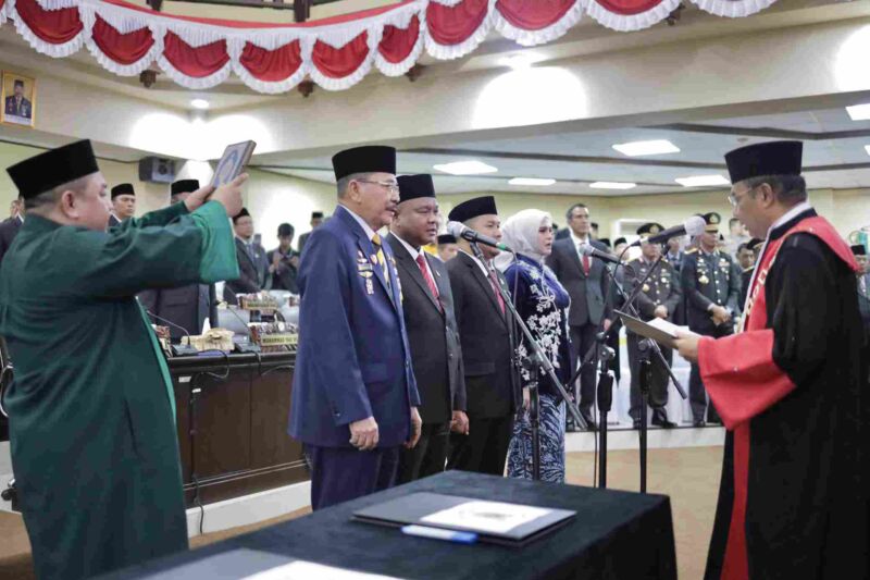 Gubernur Kalsel, H Sahbirin Noor dalam berbagai dibacakan Staf Ahli Bidang Ekonomi dan Pembangunan, Agus Dyan Nur mengucapkan selamat kepada pimpinan definitif DPRD Provinsi Kalsel yang diambil sumpah/janji oleh Ketua Pengadilan Tinggi Banjarmasin, Dr H Gusrizal, SH, M.Hum.