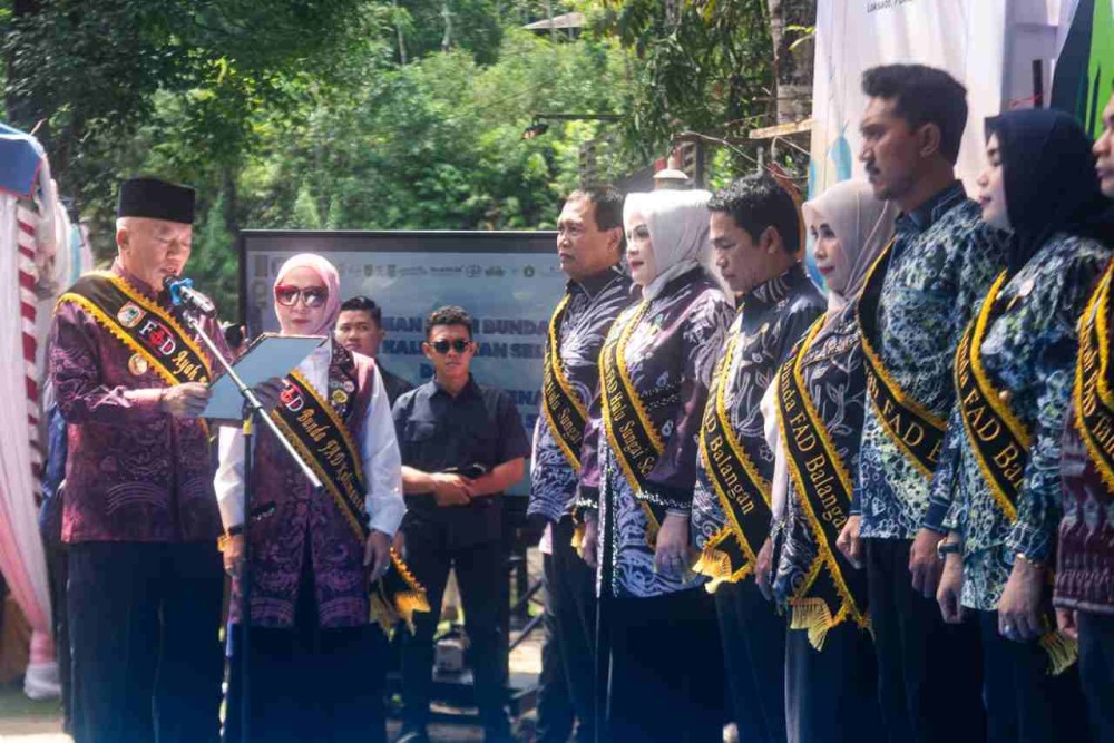 Gubernur Kalimantan Selatan, H. Muhidin bersama Ketua TP PKK Provinsi Kalsel, Hj. Fathul Jannah mengukuhkan Ayah-Bunda FAD (Forum Anak Daerah) Kabupaten/Kota sekaligus menyerahkan Piagam Kabupaten Layak Anak (KLA) di momentum Peringatan Hari Anak Nasional (HAN) ke-41 Tahun 2025 yang berlangsung di kawasan Loksado, Kabupaten HSS, Selasa (7/10/2025) siang.