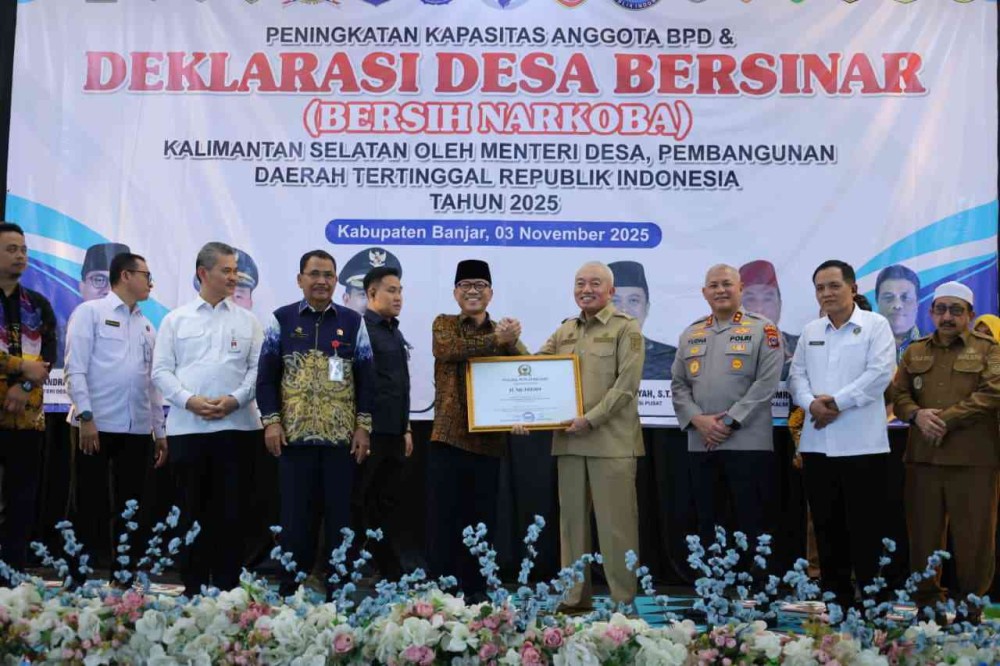 Apresiasi Gubernur H. Muhidin itu disampaikan pada kegiatan Peningkatan Kapasitas Anggota Badan Permusyawaratan Desa (BPD) se-Kalsel di Gedung Serbaguna Desa Indrasari, Martapura, Kabupaten Banjar sekaligus Deklarasi Desa Bersinar (Bersih Narkoba) se-Kalimantan Selatan Senin (3/11/2025).