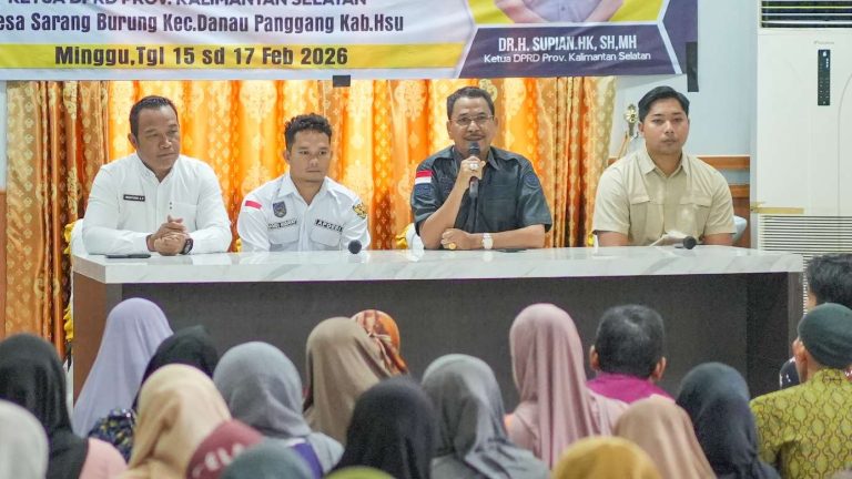 Ketua DPRD provinsi Kalimantan Selatan (Kalsel) DR. H. Supian HK, SH, MH lakukan sosialisasi Revitalisasi dan Aktualisasi Nilai-nilai Ideologi Pancasila terhadap Warga Desa Sarang Burung kecamatan Danau Panggang, Senin (16/2/2026).