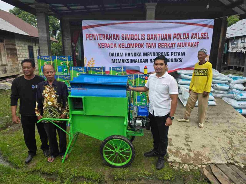 Selain mesin perontok padi, Polda Kalsel juga memberikan elektric spray, pupuk dan pestisida. Dengan adanya bantuan ini, dia berjanji akan memaksimalkan luas tanam dan luas panen yang dimiliki Kelompok Tani Berkat Mufakat