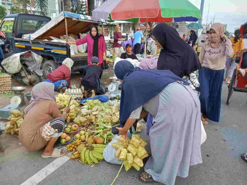 “H Min 2 cukup bsnyak laku terjual kurung ketupatnya yang di beli masyarakat, termasuk H Min 1 jelang Idul Fitri kebiasaan lebih banyak lagi terjual kurung ketupatnya,” kata Inah.