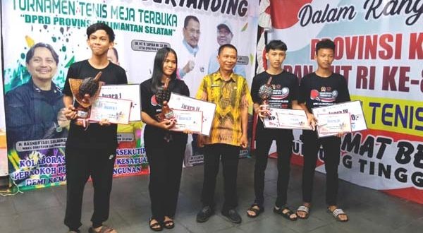 Ketua DPRD Kalsel, H. Supian HK, melalui Kepala Bagian Fasilitasi Pengawasan dan Penganggaran Sekretariat DPRD Kalsel, Riduansyah, secara resmi menutup turnamen tenis meja DPRD Kalsel dalam rangka Hari Jadi Provinsi dan HUT RI.