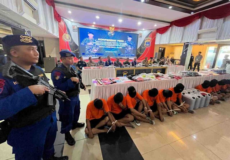 Kemudian petugas berhasil mengamankan 13 orang pelaku termasuk penadah minyak hasil rompak, dan 3 orang pelaku lainnya masih buron.