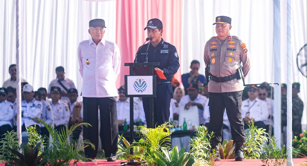 Menteri Lingkungan Hidup (LH)/Badan Pengendalian Lingkungan Hidup, Hanif Faisol Nurofiq didampingi Gubernur Kalimantan Selatan, H. Muhidin memimpin Apel Kesiapsiagaan Penanganan Kebakaran Hutan dan Lahan (Karhutla) di Provinsi Kalsel Tahun 2025 bersama sejumlah relawan di Lapangan Pangkalan Udara (Lanud) Syamsuddins Noor Banjarbaru, Kamis (7/8/2025) pagi. Selain relawan karhutla juga dari jajaran anggota TNI/Polri, Pertamina, BPBD, Manggala Agni, Damkar dan Satpol PP, serta kelompok masyarakat lainnya.
