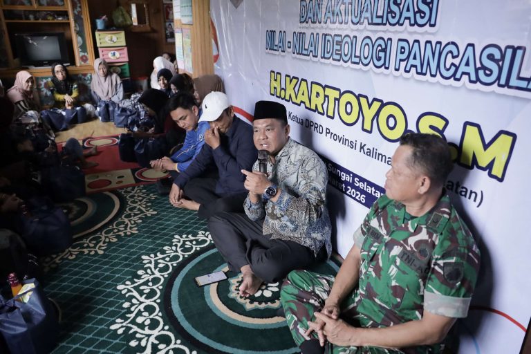 Ungkapan tersebut Wakil Ketua DPRD Kalsel Kartoyo saat Sosialisasi Revitalisasi (Sosrev) nilai-nilai Pancasila di Kecamatan Daha Utara, tepatnya di Desa Pakan Dalam, Jumat (13/03/2026).