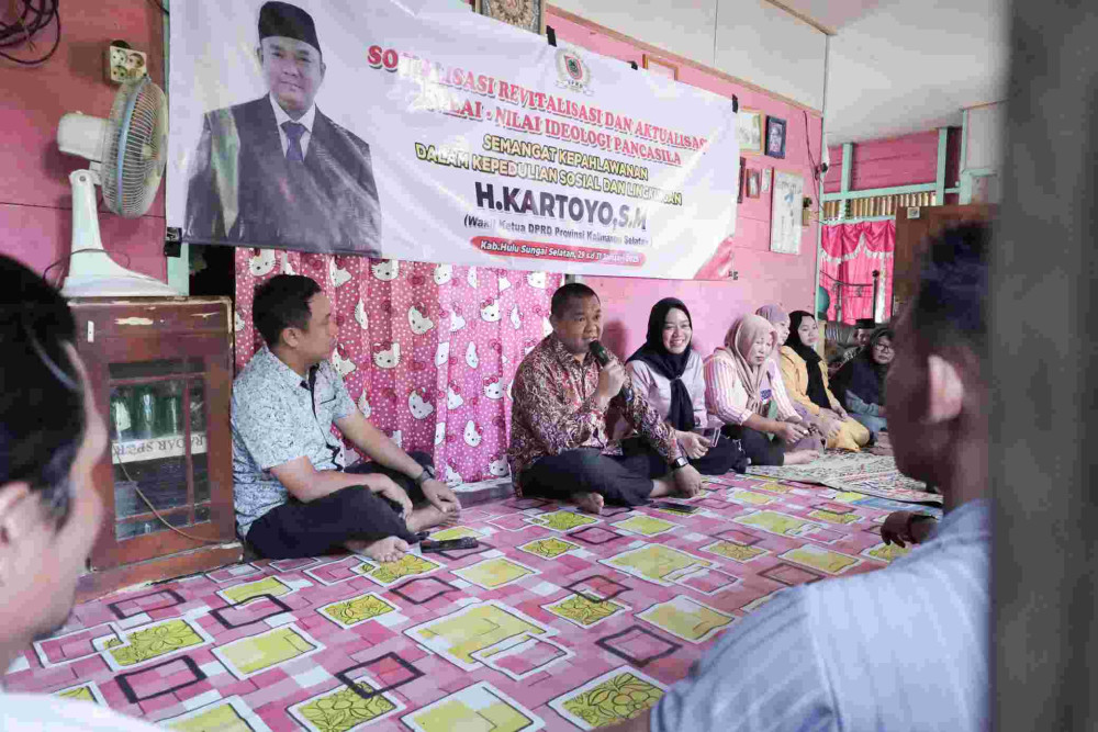 Hal tersebut diungkapkan Wakil Ketua DPRD Provinsi Kalimantan Selatan, H. Kartoyo, S.M., saat melaksanakan sosialisasi wawasan kebangsaan di Kabupaten Hulu Sungai Selatan (HSS) bertempat dirumah warga desa Bamban RT 03 kecamatan Angkinang Kamis, (30/01/2025).