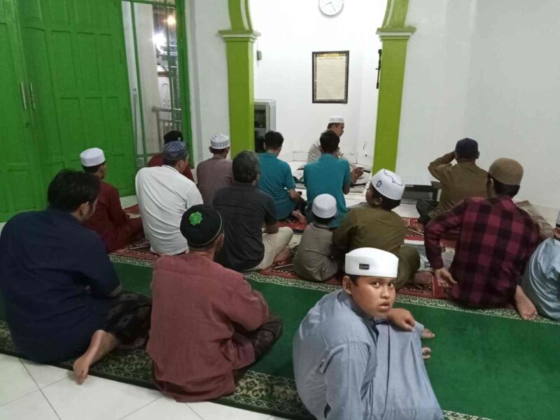 Di musholla Babussallam Komplek Haji Muhammad dihari pertama Ramadhan pelaksanaan sholat wajib dan sunat taraweh diikuti jemaah pria cukup banyak dengan jumlah rakaat 23 dilengkapi sholat witir di imami Haji Anang Wardi.