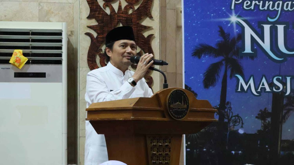 Wagub Hasnuryadi Sulaiman Saat Menyampaikan Sambutan Diacara Peringatan Nuzulul Qur an Di Mesjid Sabilal Muhtadin Banjarmasin
