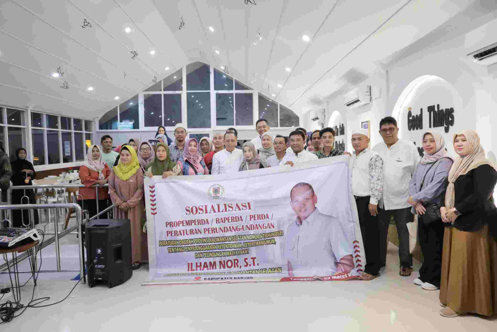 Peraturan Daerah (Perda) Nomor 6 Tahun 2020 tentang Penyelenggaraan Ketentraman Umum dan Perlindungan Masyarakat disosialisasikan Sekretaris Komisi I Dewan Perwakilan Rakyat Daerah (DPRD) Provinsi Kalimantan Selatan, Ilham Nor, S.T., dari Fraksi Gerindra, Minggu (02/03/2025), dikecamatan Kertak Hanyar Kabupatem Banjar.